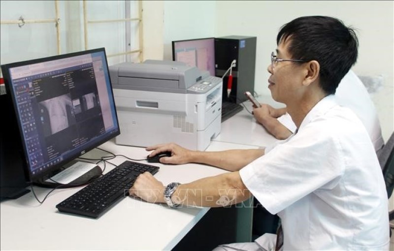 Bác sĩ ứng dụng AI trong hỗ trợ phân tích hình ảnh X- quang. Ảnh: Đồng Thúy/TTXVN
