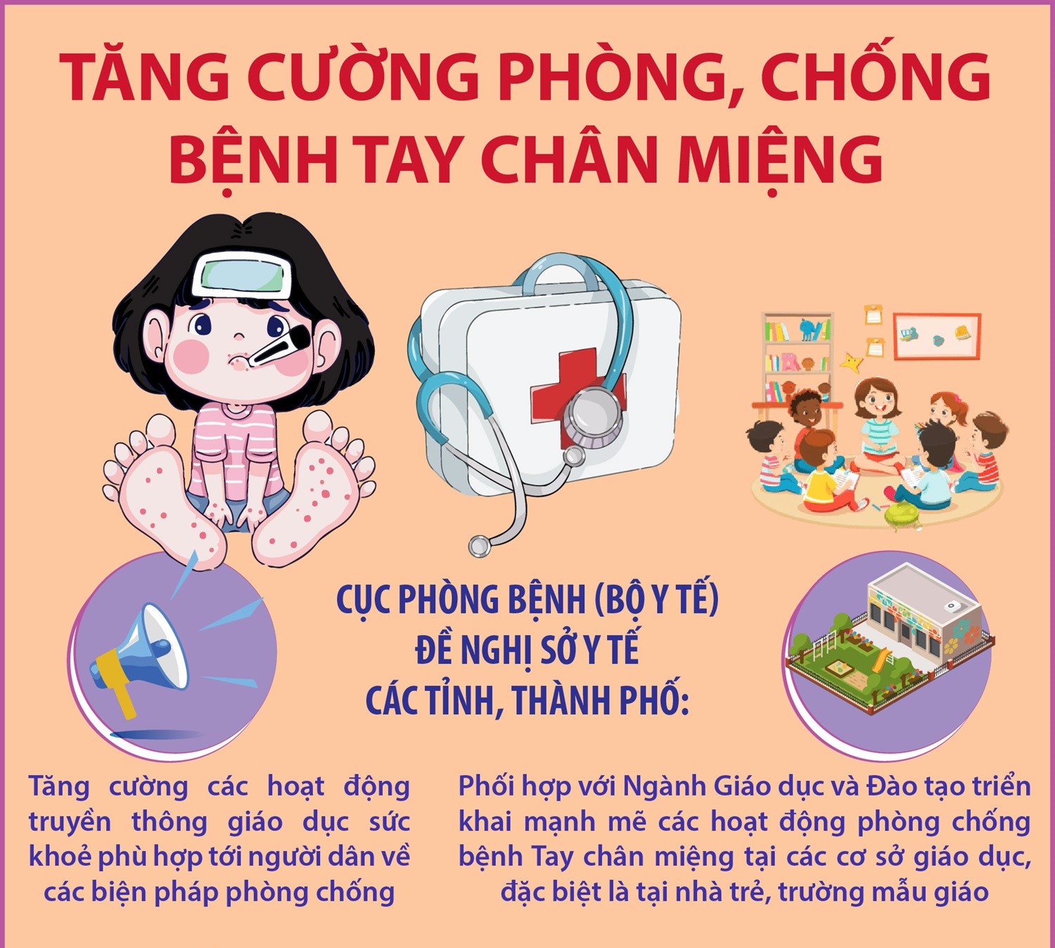 Trong đó, riêng khu vực phía Nam ghi nhận 18.031 trường hợp (chiếm 71,9% số mắc cả nước). Số trường hợp mắc bệnh tay chân miệng chủ yếu ở trẻ dưới 10 tuổi (chiếm 99,3%), trong đó hay gặp ở nhóm từ 1-5 tuổi, tuổi trẻ đi nhà trẻ và mẫu giáo (chiếm 92,7%). Để chủ động và tăng cường công tác phòng chống bệnh tay chân miệng trong thời gian tới, Cục Phòng bệnh đề nghị Sở Y tế các tỉnh, thành phố triển khai một số nội dung sau đây.